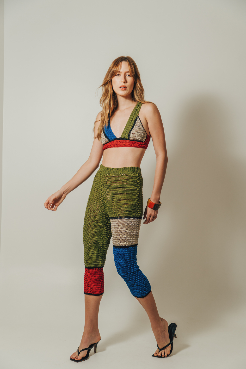 Top em crochê colorido, amarração nas costas e alças fixas